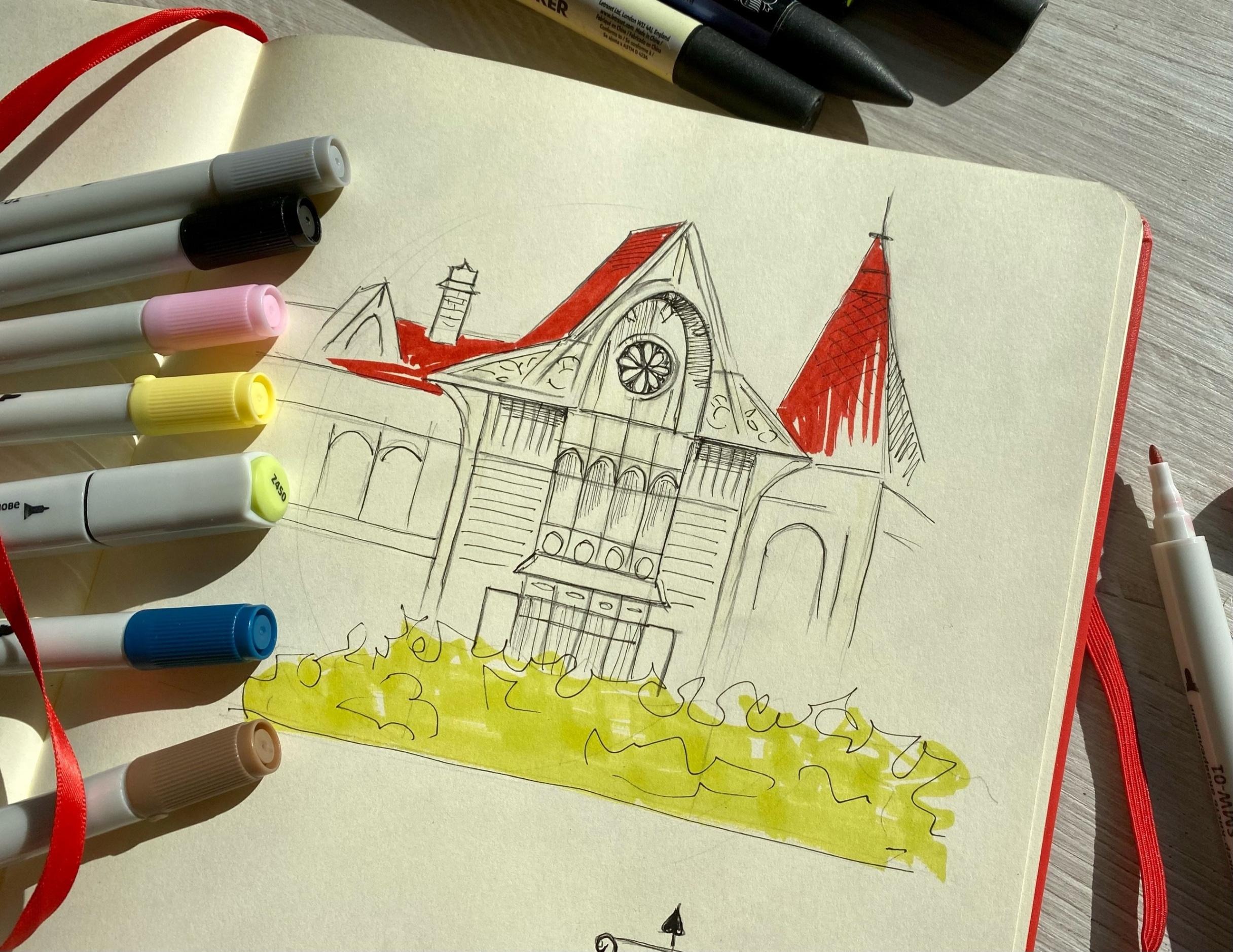 Скетчинг – это быстрые зарисовки. Уличные наброски зданий или их отдельных элементов называются архитектурным скетчингом.