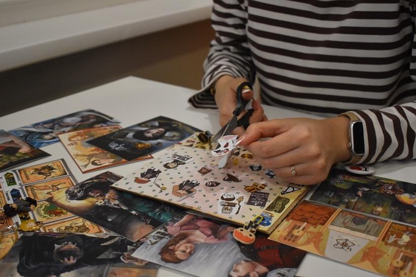Здесь мир магии станет реален. Участники мастер-класса создадут открытки в технике скрапбукинг по мотивам любимого произведения. Истории скрапбукинга хоть и несколько сотен лет, но это по-прежнему популярное и крайне увлекательное творческое занятие. На листах-основе, оформленных в стиле магической вселенной Гарри Поттера, каждый воплотит свои литературные ассоциации. Помогут оформить волшебную открытку яркие иллюстрации и символичные «артефакты» из разных материалов. Дополнят открытку «магические» фразы – крылатые выражения героев романа на русском и английском языке для полного погружения в мир волшебника Гарри. А совершенно особенной сделают бумагу с цитатами сами участники, «состарив» ее очень простым способом.