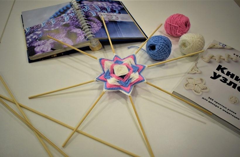 Участникам будет предложен один из наиболее интересных современных способов изготовления – плетение мандалы шерстяными нитками на каркасе из деревянных палочек. Это захватывающий процесс соединения разноцветных ниток на четырех «шпажках», превращение плетений в красивые узоры в виде квадратов, кругов, звезд.