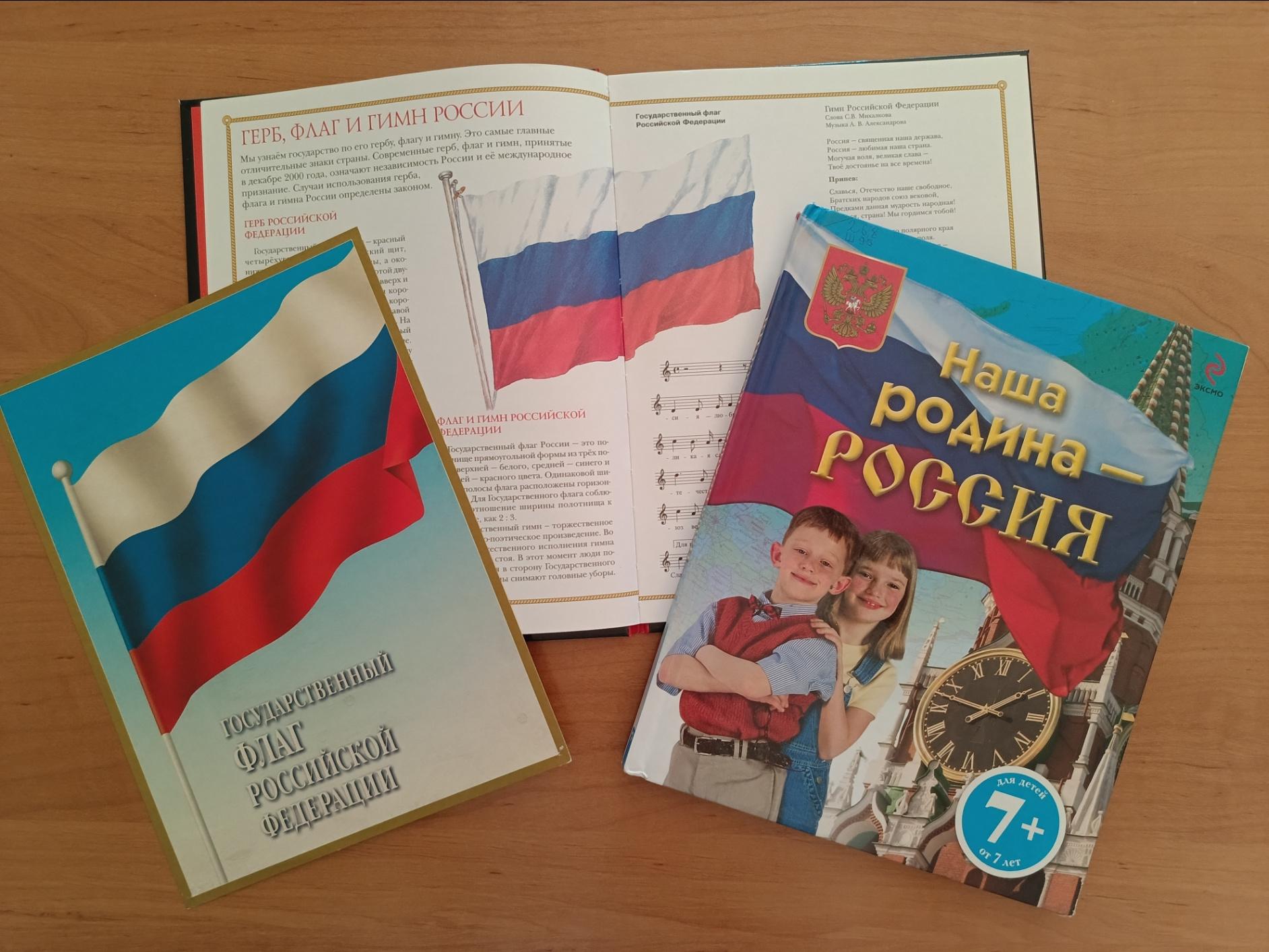Книжная выставка «России славный триколор» познакомит с литературой о России, о государственных символах.
