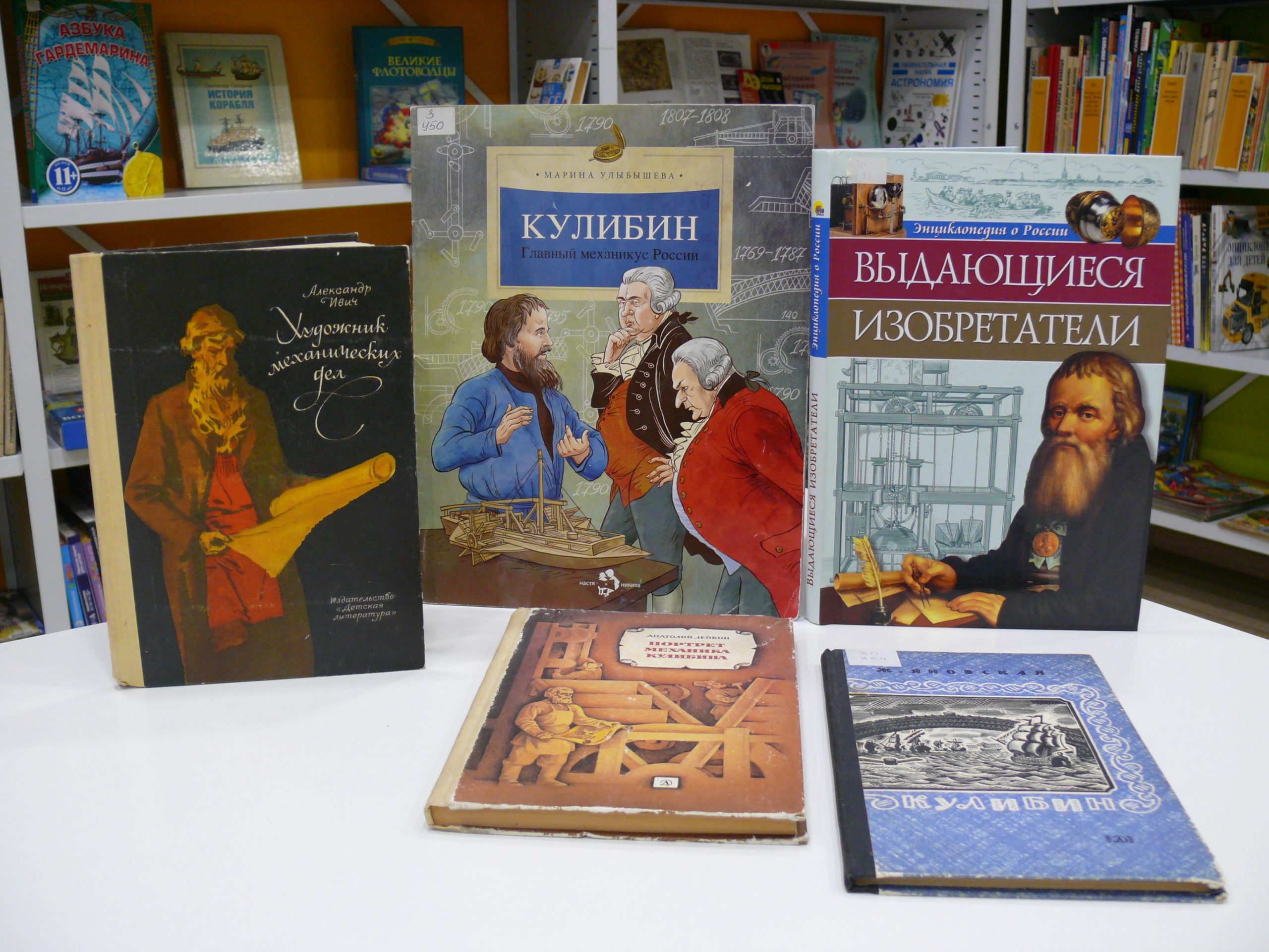 Библиотекарь проведет обзор книг о Кулибине, дети посмотрят отрывок из документального фильма «Феномен Кулибина», (режиссер Игорь Безруков, 2015 год).