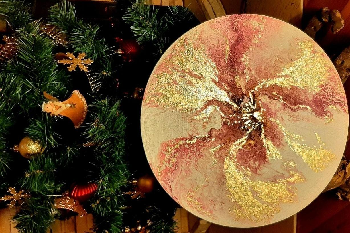 Этот волшебный рождественский день мы предлагаем провести с «Флюид Арт» — техникой рисования жидким акрилом. Создание картин в этой технике больше похоже на арт-терапию – причудливые узоры и переливы краски создаются фактически сами собой. Все, что нужно художнику – развести жидкий акрил и, наливая его на холст, создавать свой собственный шедевр. В картину мы добавим рождественские мотивы!
