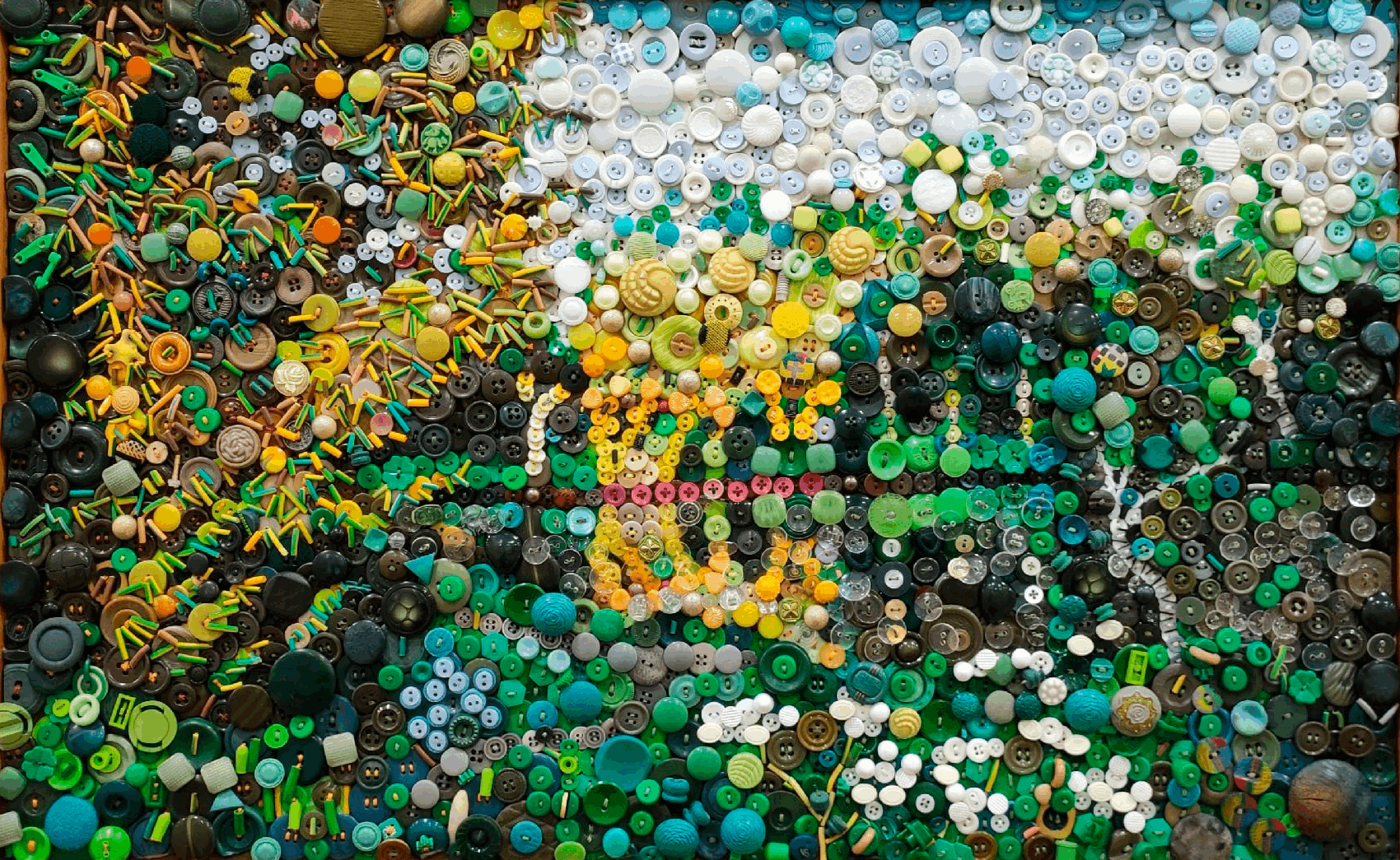 картины объединяют в сюжет от одной до пяти тысяч пуговиц.