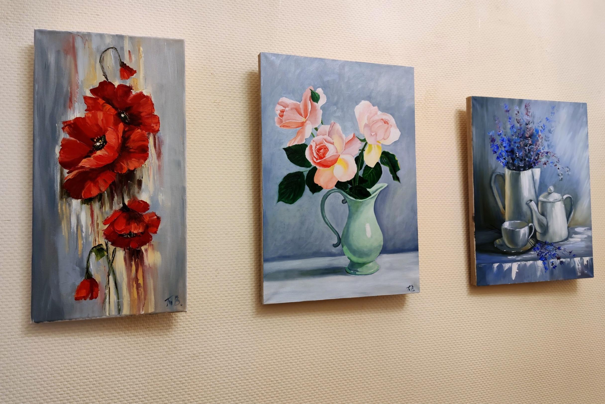 На выставке болше всего поражают цветы, написанные легко и воздушно, а также изображения животных – каждый со своим характером.