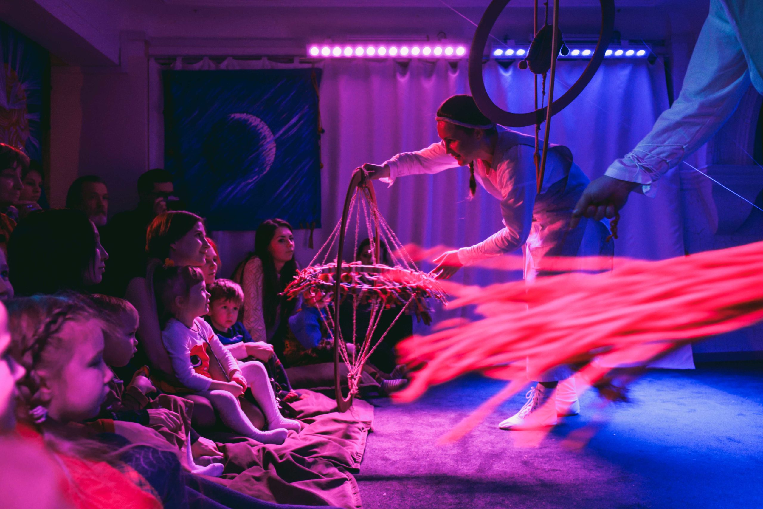 У каждого времени суток своя энергия, атмосфера, движение. Любой ребенок уже знает, что такое день и ночь, ведь мама ежедневно будит его по утрам, а вечером укладывает спать. Поэтому спектакль построен не на сюжетной линии, а на знакомых с младенчества эмоциях и ощущениях. Маленькие зрители узнают о метаморфозах и процессах, которые происходят с нашим внутренним миром, когда день и ночь сменяют друг друга. В спектакле используются интерактивные картины и динамические инсталляции, созданные из природных материалов, а удивительные звуки и мелодии старославянских музыкальных инструментов погружают в атмосферу общения с мудростью наших далеких предков.
