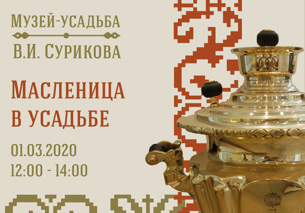 1 марта с 12:00 до 14:00 традиционные масленичные гуляния в усадьбе Сурикова.